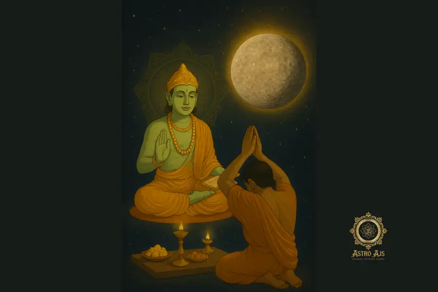 The Mercury Empowerment Chant strengthens the influence of planet Mercury (Budh), which governs communication, intellect, education, and business. When Mercury is negatively placed in a birth chart it can create several challenges related to Mental Confusion & Poor Judgment, Communication Problems, Career Instability, Disharmony in Relationships. Chanting this mantra to empower Mercury enhances speech clarity, analytical skills, and decision-making abilities. It is especially beneficial during Mercury’s adverse periods like Budh Mahadasha or retrograde. The ritual improves memory, creativity, and expression while reducing nervous tension and misunderstandings. By aligning with Mercury’s positive vibrations, one can achieve academic excellence, professional success, and harmonious relationships. Regular practice fosters mental agility, wisdom, and a balanced approach to life’s challenges.