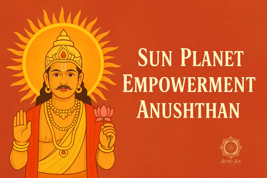 The Sun Planet Empowerment Anushthan energizes Surya’s placement in the horoscope, strengthening qualities like willpower, health, leadership, and self-expression. This ritual is essential for those suffering from a weak or afflicted Sun, resulting in low vitality, strained parental relationships, or poor recognition. Through Vedic rituals, mantras, and offerings, this Anushthan activates solar energy, enhances personal power, and clears ego-based imbalances. It is highly beneficial for career growth, government-related success, and confidence. When performed at auspicious solar timings, it revitalizes the soul and fosters a radiant, purpose-driven life rooted in dharma and divine truth.